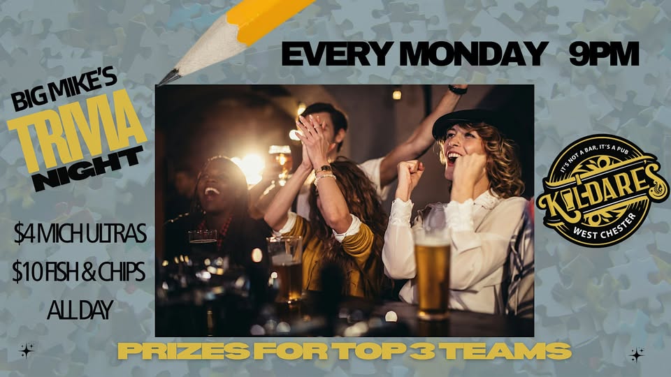 Welcome to the Monday Night Trivia with Big Mike! � Get ready for a fun night filled with brain-teasing questions and great company at Kildare’s.